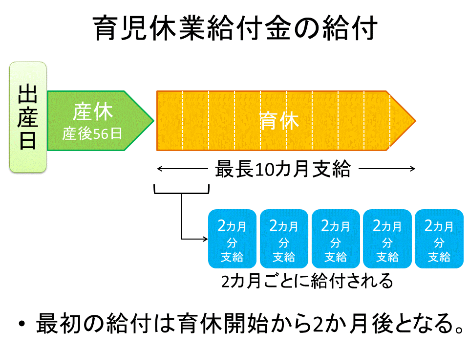 ③育児休業給付金 → 遅い!最初の支払いが育休開始2か月後以降