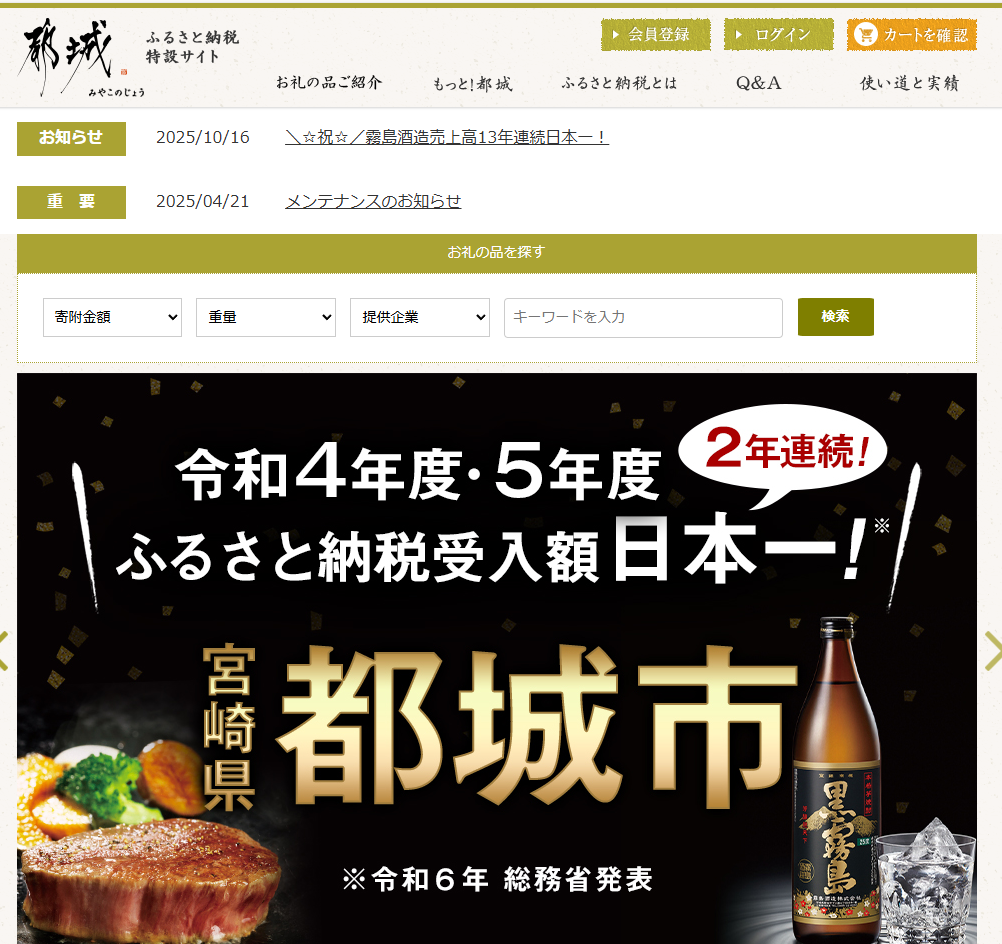 都城市の公式ふるさと納税ページや、ふるさとチョイス・楽天ふるさと納税などのサイトから申し込みができます。