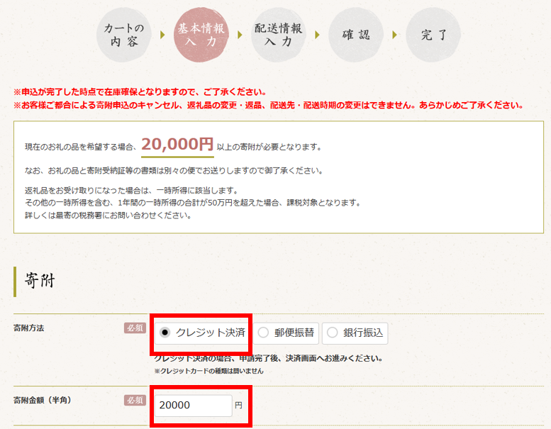 寄付金額はすでに入力されているので、このままでオッケーです。