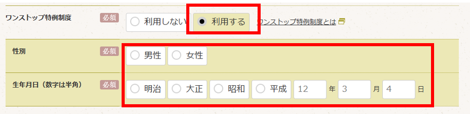 ここできちんとワンストップ特例制度を「利用する」にチェックをいれること。