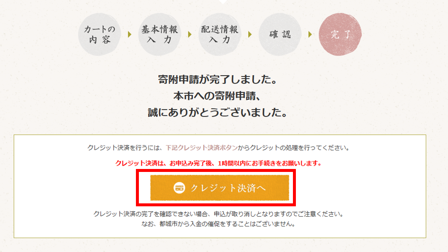 寄附方法を私は「クレジット決済」にします。自由に選んでくださいね。